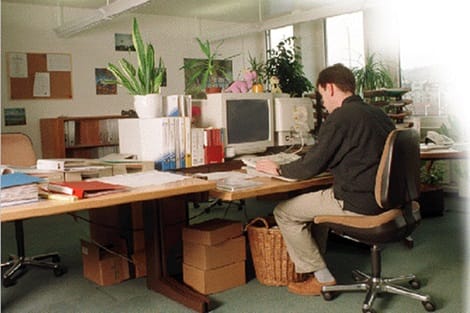 Bespreek aan de hand van de 10 tips om je werkplek ergonomisch in te richten, de goede en minder goede zaken die je ziet op onderstaande foto’s.