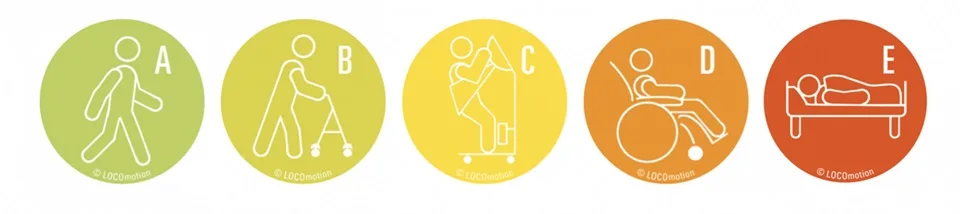 Bij wie zichzelf kan verplaatsen bepaalt de vraag over de nood aan instructie of hulpmiddel het onderscheid tussen MK A (neen) en MK B (ja). Bij wie zich niet zelfstandig kan verplaatsen leidt de vraag over een stafunctie en zitbalans naar MK C. Indien deze niet (volledig) aanwezig is bepaalt de restkracht in armen of benen het verschil tussen MK D (ja) en MK E (neen).