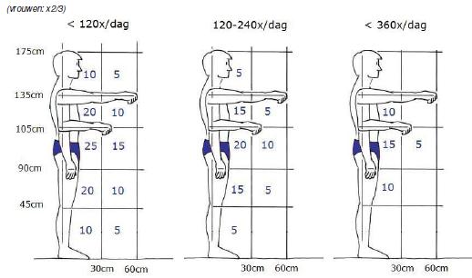 Gangbare richtlijnen over reikafstanden zijn veelal strenger, de toelaatbare frequenties liggen lager. Vanuit ergonomisch standpunt is dat goed, het risico op overbelasting is lager. In productie echter is meer dan twee keer per minuut reiken standaard en dan zou de werkzone bijvoorbeeld steeds binnen de 30 cm moeten liggen… Dat is niet realistisch.